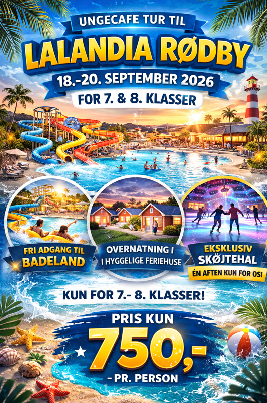Vi tager på tur til Lalandia fra den 18. til 20. september. Det bliver nogle hyggelige dage med masser af sjov i badelandet, afslapning i huset og tid til at hænge ud sammen. Der bliver også mulighed for spil, aktiviteter og bare at nyde turen væk fra hverdagen.